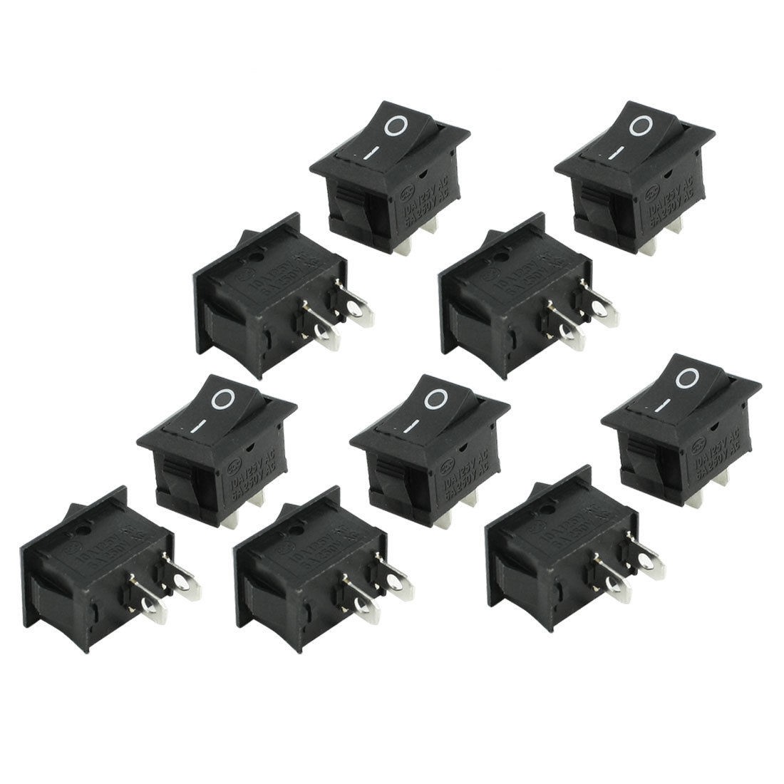 10 pcs AC 250V 6A 2 Pin ON-OFF I/O 2 Position SPST Snap-in Boat Rocker Switch