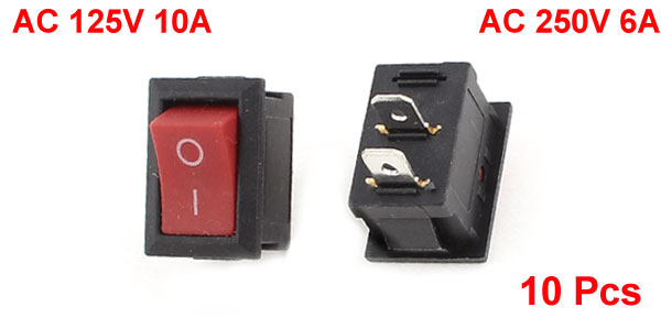 Product Name Rocker Switch Material Plastic, Metal Type On Off, SPST Terminals Number 2 Rating Voltage AC 250V 6A /AC 125V 10A Total Size(Each) 2.2 x 1.5 x 2.2cm/ 0.86" x 0.6" x 0.86"(L*W*H) Mounted Size 18.6 x 12 x 20mm/ 0.7" x 0.47" x 0.8" (L*W*H) Color Black,Red, Silver Tone Total Weight 32g Package Content 10 x Rocker Switches - Reviews