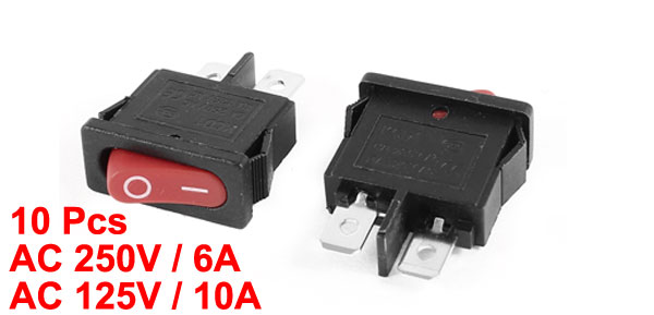 Product Name Rocker Switch Material Plastic Model KCD1 Contact Pin 2 Pin Switch Type SPST Voltage / Current AC 250V / 6A, AC 125V / 10A Size 20 x 9 x 25mm / 0.8" x 0.35" x 1"(L*W*H) Color Black, Red Weight 25g Package Content 10 x Rocker Switches - Reviews