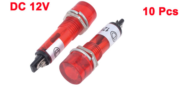 10 Pcs AC DC 12V 9mm Thread Dia Red Bulb Power Signal Indicator Pilot Light Lamp