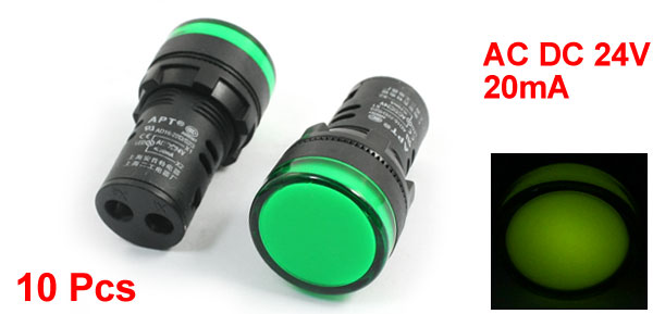 Product Name LED Indicator Light Model No. AD16-22D/S Voltage AC DC 24V Current <=20mA Mounting Hole Diameter 22 mm / 0.8" Total Size 29 x 51mm / 2" x 1.1" (Max.D*H) Material Plastic, Electric Components Main Color Black, Green Net Weight 180g PakcageContent 10Pcs x LED Indicator Lights - Reviews