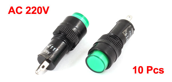 10 Pcs AC220V Green Light Signal Indicator for Electrical Circuit