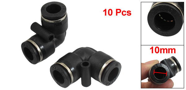 10 Pcs Air Pneumatic 10mm to 10mm L Shaped Push in Elbow Connector Fittings