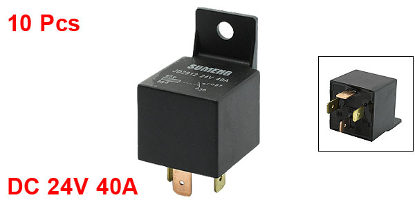 Product Name Car Relay Model No. JD2912 Rated Current 40A Rated Voltage DC 24V Contact Type 1NC(SPST) Pin Number 4 Size 3 x 2.8 x 2.5cm / 1.2" x 1.1" x 1" (L*W*T) Material(External) Plastic, Metal Main Color Silver Tone, Black Weight 332g Package Content 10 x Car Relay