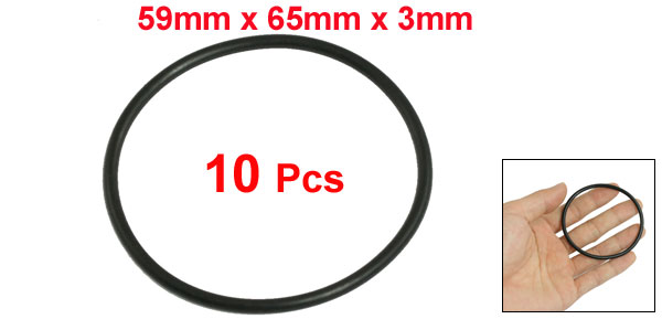Product Name O Ring Material Nitrile Rubber(NBR) External Diameter 65mm / 2.559" Inner Diameter 59mm / 2.322" Thickness 3mm/ 0.118" Color Black Weight 22g Package Content 10 x NBR O Ring - Reviews