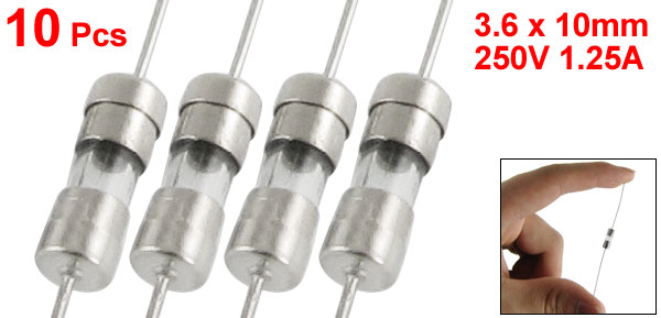 10 Pcs Axial Lead Fast Acting 3.6 x 10mm Glass Fuse 250V 1.25A