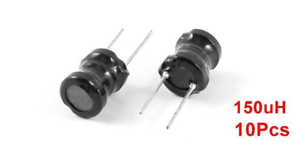 Product Name Inductor Material UL-polyolefin, Metal Inductance 150uH Body Size 8 x 10mm / 0.21" x 0.39"(D*H) Lead Diameter 0.5mm / 0.196" Pitch 5mm/ 0.2" Color Black, Silver Tone Weight 22g Package Content 10 x Inductors - Reviews