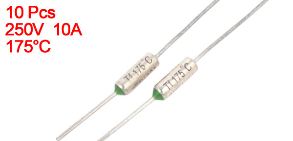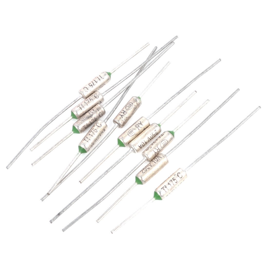 10 pcs Axial Leads Metal 175 Celsius Temperature Thermal Fuses
