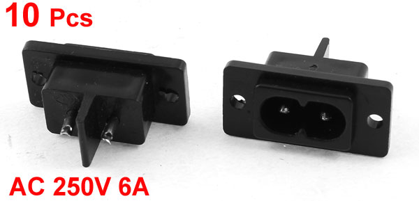 10 Pcs Black 2 Pins IEC320 C8 AC Power Socket Connector AC 250V 6A