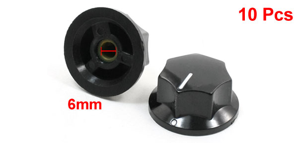Product Name Rotary Knob Material Plastic, Metal Color Black Fit for Shaft Hole Dia. 6mm/ 15/64" Overall Size 33 x 17mm/ 1.3" x 0.7"(D*H) Weight 97g Package Included 10 x Potentiometer Rotary Knobs - Reviews