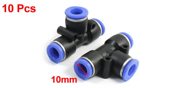 10 Pcs Black Blue Equal 10mm Dia Tee Union Air Pneumatic Push In Fittings Joints