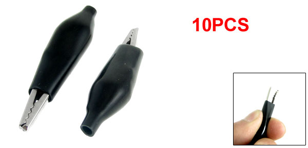 10 Pcs Black Boot Electric Test Lead Alligator Clips 45mm Long