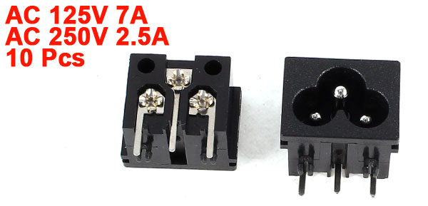 10 Pcs Black Plastic IEC320 Inlet C6 Power Adapter AC 250V/125V 2.5A/7A