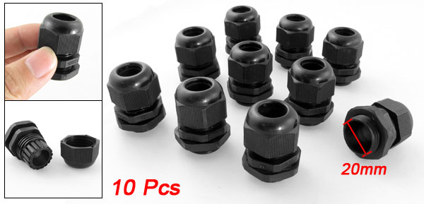 10 Pcs Black Plastic Waterproof Cable Glands M20 x 1.5