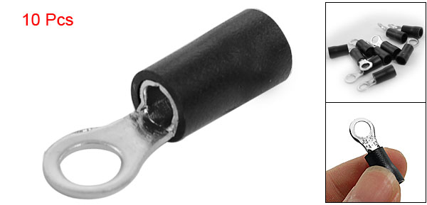 10 Pcs Black PVC Sleeve Ring Tongue Pre Insulated Terminals