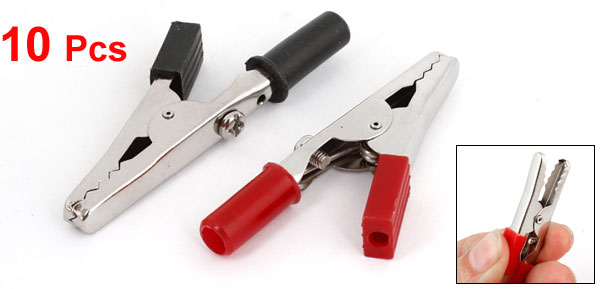 10 Pcs Black Red Plastic Handle Test Probe Battery Metal Alligator Clips