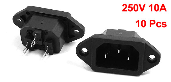 10 Pcs Black Repair Part 3 Pin C14 Male Power Adapter Connector