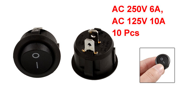 10 Pcs Black Round Button 2 Pin SPST On/Off Rocker Switch AC 125V/10A 250V/6A