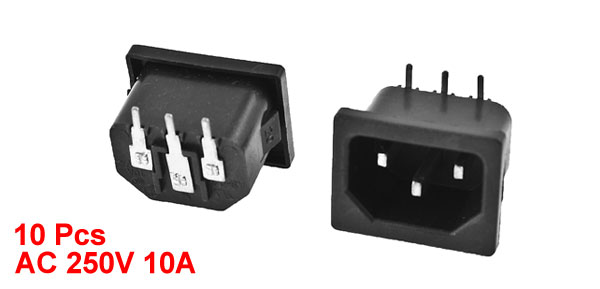 10 Pcs Black Shell IEC320 C14 Power Socket Adapter AC 250V 10A