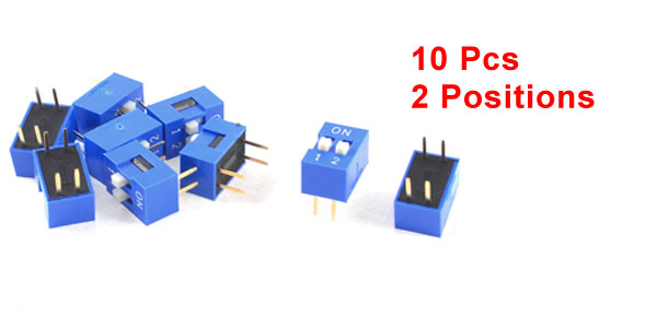 10 Pcs Blue Double Row 4 Pin 2 Positions 2.54mm Pitch DIP Switches