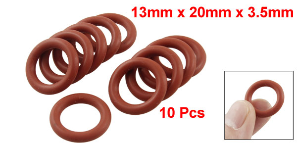 10 Pcs Brick Red Silicone O Ring Seal Gaskets 13mm x 20mm x 3.5mm