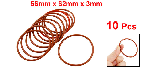 10 Pcs Brick Red Silicone O Ring Seal Gaskets 56mm x 62mm x 3mm