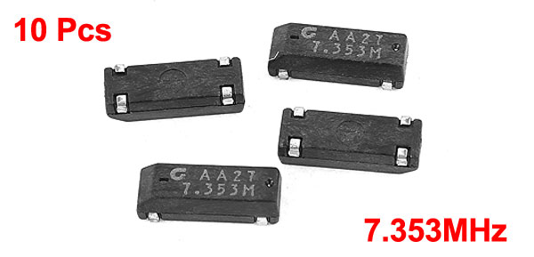Details10 Pcs CM309S SMD Type Soldering 4 Pin Crystal Oscillator 7.353MHz Black  Product Name Crystal Oscillator Output Frequency 7.353MHz Frequency Tolerance ±20ppm Load Capacitance 20PF Frequency Stability ± 20ppm Mounting Type SMD Package Type CM309S/ SMD No. of Pins 4 Effective Series Resistance 30 ohm Size(Each One) 12 x 4 x 3.5 mm/ 0.47" x 0.16"x 0.14"(L*W*T) Material Electronic Parts Color Black Weight 5g Package Content 10 x Crystal Oscillator
