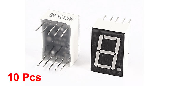10 Pcs Common Cathode 1 Bit 7 Seg DIP Digital Tube 0.56" Display Red LED 10-Pin