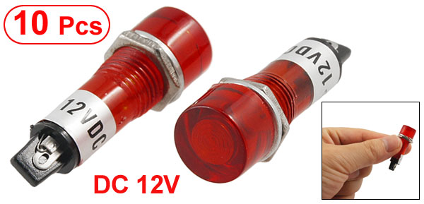 10 Pcs DC 12V 2 Pins Recessed Red Pilot Light Signal Indicator Lamp