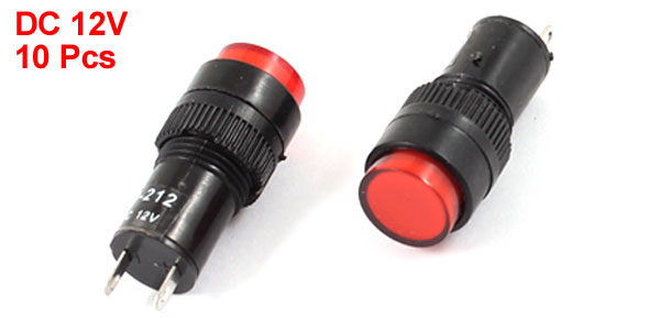 10 Pcs DC 12V Red Light Signal Indicator for Electrical Circuit