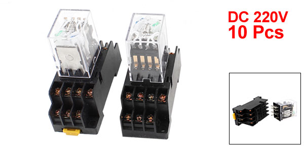 10 Pcs DC 220V Coil 4PDT Green LED General Purpose Power Relay w Socket Base