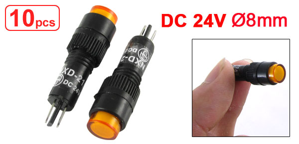 10 Pcs DC 24V 8mm Yellow Neon Power Indicator Signal Light