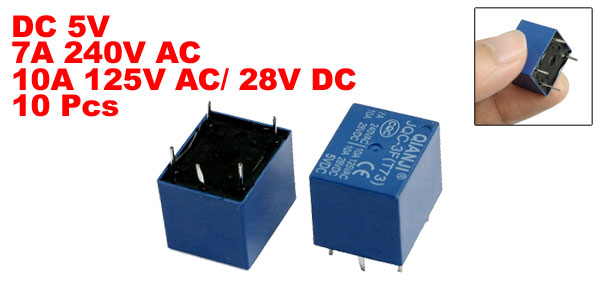 10 Pcs DC 5V Coil 7A 240VAC 10A 125VAC/28VDC 5 Pins SPST Power Relay JQC-3F