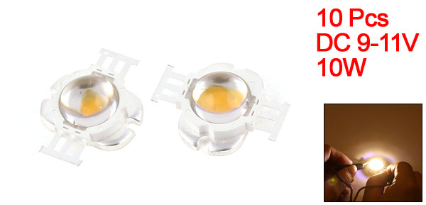 10 Pcs DC 9-11V 900mA 10W Warm White LED Bead Emitters 90-100Lm 2800-3000K