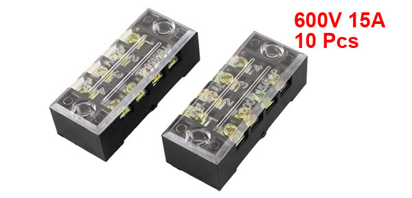 10 Pcs Dual Row 4 Position Screw Terminal Block Strip 600V 15A w Cover