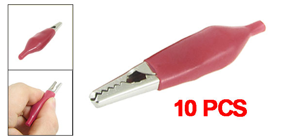 10 Pcs Electric Test Lead Alligator Clips 57mm Long w Red Boot