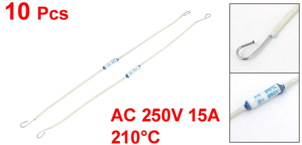 Product Name Thermal Fuse Rated Functioning Temperature 210°C Rated Voltage 250V Rated Current 15A Pin Diameter 1mm / 0.039" Body Size 16 x 4mm/ 0.6" x 0.16" (L*D) Total Length 21mm/ 0.8" Material Metal Color Silver Tone, White Weight 20g Package 10 x Thermal Fuse - Reviews
