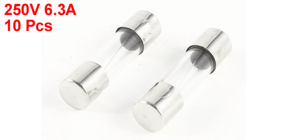 Product Name Glass Tube Fuses Fuction Fast Blow Rated Voltage 250V Rated Current 6.3A Specification 5 x 20mm Diameter 5mm / 0.2" Length 20mm / 0.8" Material Glass Color Clear, Silver Tone Weight 6g Package 10 x Glass Tube Fuses - Reviews