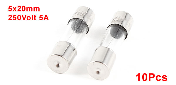 Product Name Glass Tube Fuses Fuction Fast Blow Rated Voltage 250V Rated Current 5A Specification 5 x 20mm Diameter 5mm / 0.2" Length 20mm / 0.8" Material Glass Color Clear, Silver Tone Weight 7g Package 10 x Glass Tube Fuses - Reviews