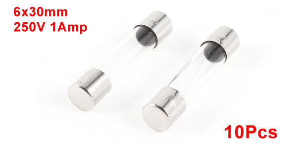 Product Name Glass Tube Fuses Fuction Fast Blow Rated Voltage 250V Rated Current 1A Specification 6 x 30mm Diameter 6mm / 0.24" Length 30mm / 1.2" Material Glass, Metal Color Clear, Silver Tone Weight 11g Package 10 x Glass Tube Fuses - Reviews