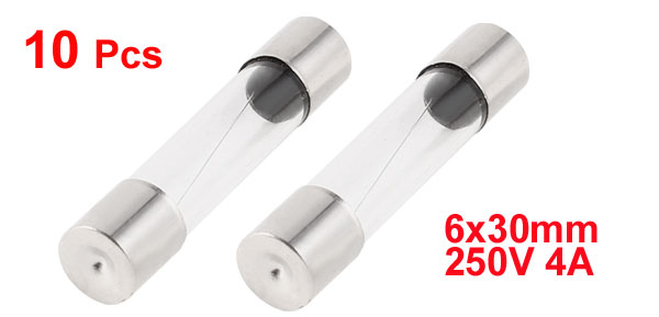 Product Name Glass Tube Fuses Fuction Fast Blow Rated Voltage 250V Rated Current 4A Specification 6 x 30mm Diameter 6mm / 0.24" Length 30mm / 1.2" Material Glass, Metal Color Clear, Silver Tone Weight 11g Package 10 x Glass Tube Fuses - Reviews