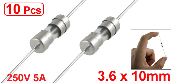 10 Pcs Glass Cartridge Fast Blow Axial Lead Fuse 3.6x10mm 250V 5A