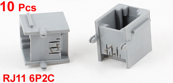 10 Pcs Gray Plastic Unshielded RJ11 6P2C Network Modular PCB Connector Jacks
