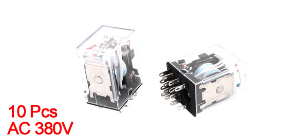Product Name Power Relay Model No. HH54PL Coil Voltage AC 380V Type 4PDT Pin Quantities 14 Pin Size 6 x 3mm/0.24" x 0.2"(L*W) Overall Size (Approx.) 27 x 20 x 35mm/1.1" x 0.8" x 1.4"(L*W*H) Shell Material Plastic, Metal Light Color Red Main Color Clear, Black Total Weight 241g Package Content 10 x Power Relay - Reviews