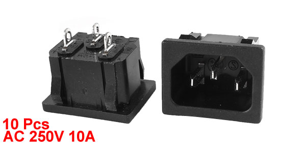 10 Pcs IEC-302 C14 Inlet Plug PCB Mount Panel Socket AC 250V 10A