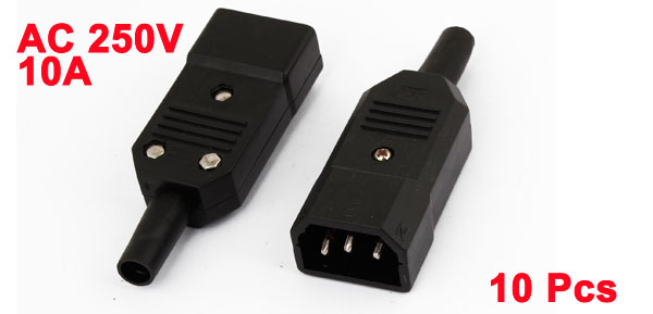 10 PCS IEC320 C14 Male Plug Power Adapter Cable Connector AC 250V 10A