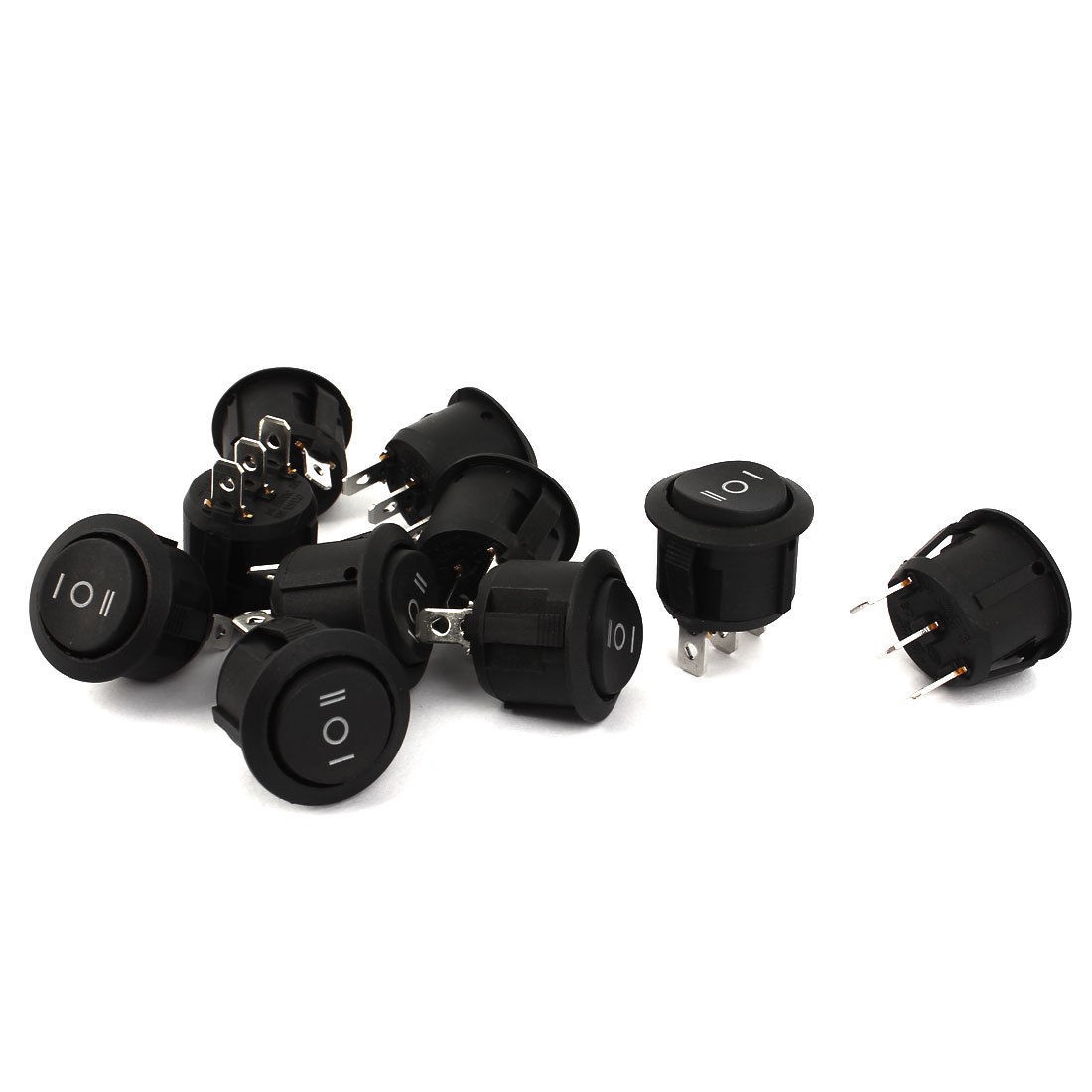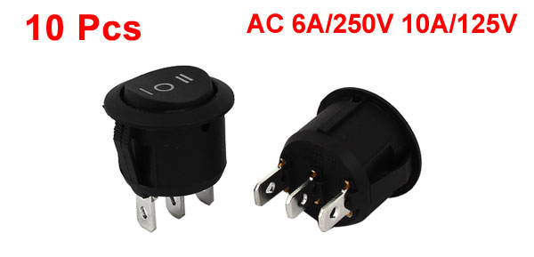 10 Pcs KCD1-2 Black Round Rocker Switch 3Pin SPDT ON-OFF-ON AC 6A/250V 10A/125V