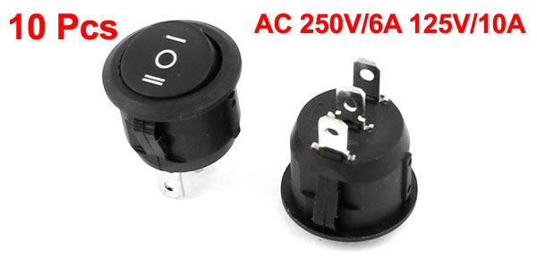10 Pcs KCD1 3 Pin 3 Postion SPDT Round Rocker Power Switch AC 250V/6A 125V/10A
