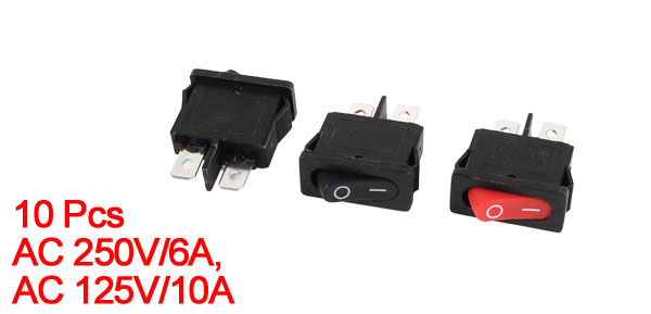 Item Name Rocker Switch Model KCD1 Type SPST Position On/Off Voltage & Current AC 250V/6A, AC 125V/10A Overall Size 2.2 x 0.9 x 2.5cm/ 0.87" x 0.35" x 1"(L*W*H) Body Color Black, Red Material Plastic, Metal Net Weight 25g Package Content 10 x Rocker Switches - Reviews