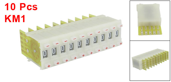 Product Name Pushwheel Switch Model KM1 Number of Unit 1 Digital 0,1,2,3,4,5,6,7,8,9 Output Code BCD Mounting Size(Each) 22 x 8mm/0.9" x 0.3"(W*T) Each Height 40mm/ 1.6'' Total Length 80mm/3.1" Color White, Yellow Material Plastic, Electronic Parts Net Weight 32g Package Content 10 x Pushwheel Switch - Reviews